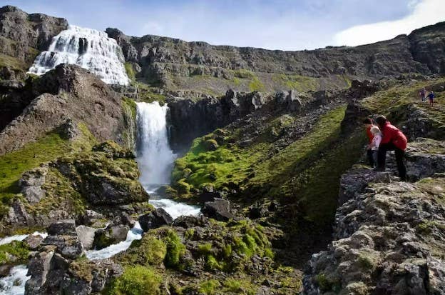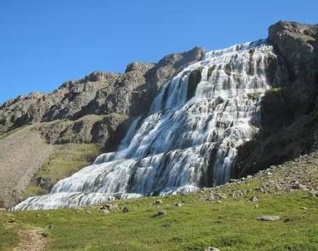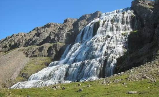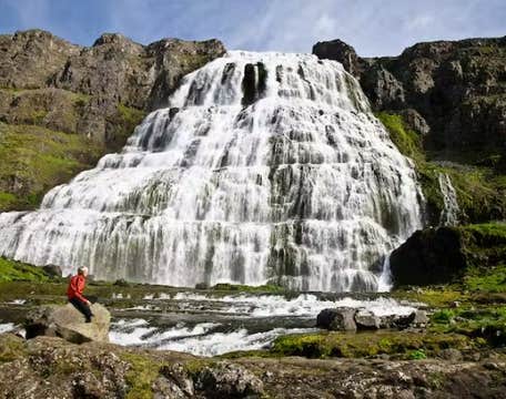 You can hike to the top of Dynjandi waterfall during your visit. As you head up, you'll pass six smaller waterfalls, including Haestahjallafoss, Strompgljufrafoss, Gongumannafoss, Hrisvadsfoss, Hundafoss, and Baejarfoss waterfalls.