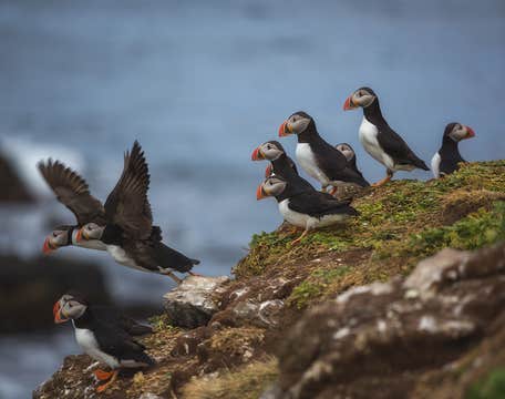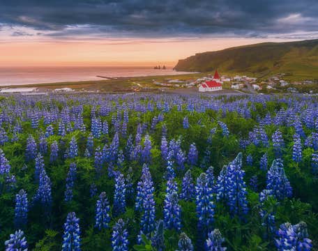 Efter at have besøgt de to vandgiganter i syd kører du til Reynisfjara, en sort sandstrand nær den lille by Vík. Denne strand er berømt for sit livlige fugleliv og stemningsfulde naturlige omgivelser. Der kan du sandsynligvis se flokke af søpapegøjer på jagt efter føde omkring de pyramideformede basaltsøjler, der udgør Reynisfjaras klipper.