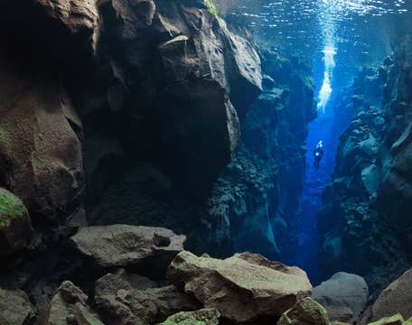 Dykkerturen starter ved Silfra, som ligger i Þingvellir Nationalpark. Denne tur er perfekt for selvkørende dykkere, der ikke planlægger at tage tilbage til Reykjavík med det samme og gerne vil fortsætte deres rejse efter at have besøgt Þingvellir Nationalpark.