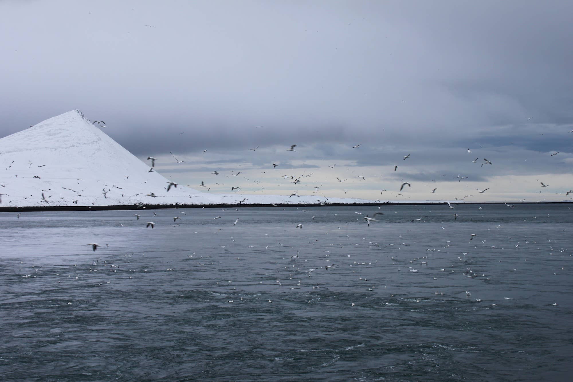 Oft kann man sogar auch Orkas von der Strasse aus beobachten...und die neugierigen Gesichter der Seehunde verfolgen einen, wenn man sich dem Strand naehert. Die Landschaft ist eine weisse Traumlandschaft aus wundervoll geformten Bergen zum Kontrast des tiefen blauen Meeres. In solchen Momenten weiss ich warum ich hier lebe ;)