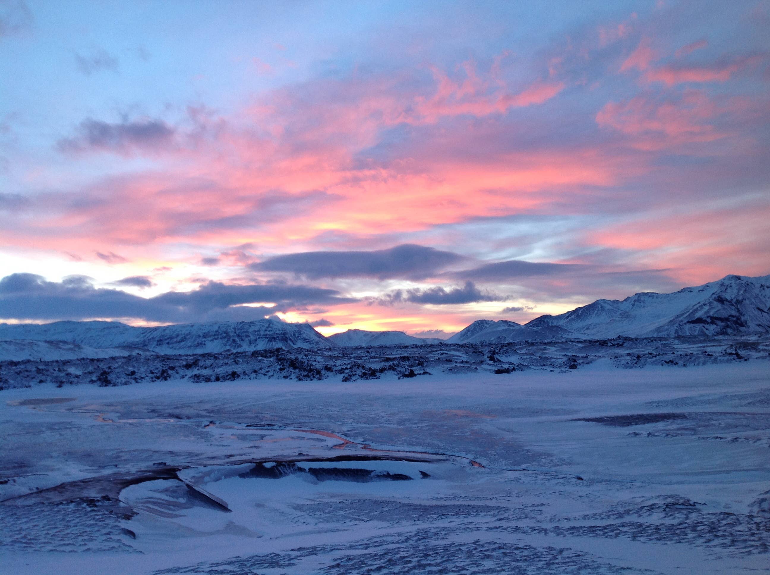 Dieses Foto habe ich vorhin einfach so mal nebenbei bei meiner Überfahrt über den Bergpass auf Snæfellsnes gemacht.... Der Himmel war in den typischen Babyfarben abwechselt rosa und hellblau getaucht...und dazu die mit Schnee bedeckten Berge ... Typisch für Island .... Die Natur spielt mit allerlei Farben... Immer wieder bin ich erstaunt über diese wunderbare Landschaft... Solche Augenblicke lassen es einen dann schnell vergessen dass man eigentlich den Frühling ersehnt und die Nase voll hat von vereisten Wegen und Strassen und den darausenstehenden Rutschpartien ;)
