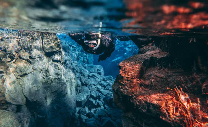Es ist der einzige Ort auf der Erde, an dem du zwischen einem Treffpunkt der Welten schwimmen kannst: der nordamerikanischen und der eurasischen tektonischen Platte. Erlebe die Kraft und Stärke des Landes, während du dich von der Strömung treiben lässt. Pflanzen, die an Trollhaare erinnern, wachsen auf den Felsen und schwimmen im Wasser, und du wirst viele Schattierungen von grünen und gelben Algen sehen.
