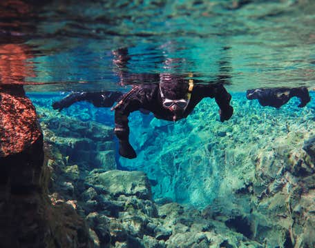 Tauche bei dieser Drysuit-Schnorcheltour in die Silfra-Spalte im Þingvellir-Nationalpark ein, die zum UNESCO-Weltnaturerbe gehört. Diese Tour beginnt am Rande des Thingvallavatn, des größten natürlichen Sees in Island, und ermöglicht dir, in der Silfra-Spalte zwischen zwei Kontinenten zu schnorcheln. Diese Tour ist perfekt für alle, die gerne schnorcheln und eine einmalige Erfahrung machen möchten.
