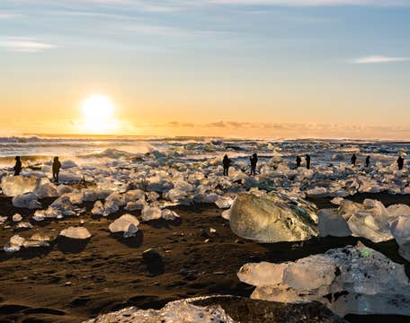 Hier habt ihr reichlich Zeit, um die Gegend zu erkunden, nach Möwen und Robben Ausschau zu halten, die in der Lagune spielen, und die blaue Farbe der Eisberge zu bewundern. Ihr könnt auch am nahe gelegenen Diamond Beach spazieren gehen, dessen schwarzer Sand ein weiterer Hinweis auf die vulkanische Vergangenheit Islands ist.