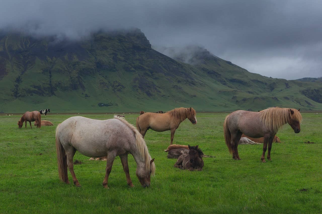 Unterwegs kommt ihr an Feldern aus schwarzer Lava vorbei, die nach Ausbrüchen vor langer Zeit abgekühlt und verhärtet sind, an Schafen und Pferden, die mit ihren Jungen in den Tälern spielen, und an Klippen und Bergen, die sich über das Land erheben.