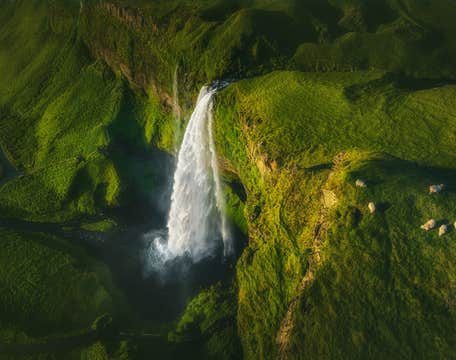 Die letzte Station der Tour ist der Seljalandsfoss-Wasserfall. Der Wasserfall stürzt etwa 60 Meter von den Klippen des Eyjafjallajökull in die Tiefe und ist einzigartig, weil Besucher hinter ihm entlanggehen können. Dadurch bietet sich eine besondere Perspektive auf das herabstürzende Wasser.