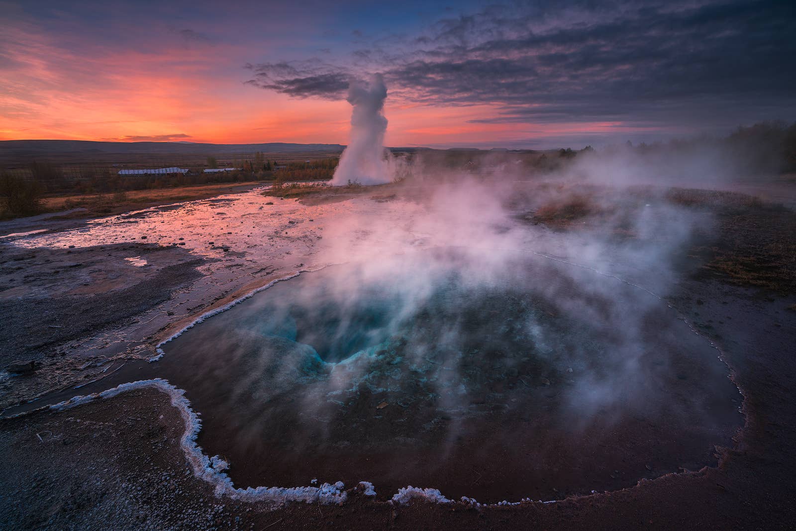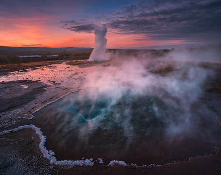 Deine Reise beginnt beim Nationalpark Þingvellir, der sowohl für seine atemberaubende Schönheit als auch für seine historische Bedeutung bekannt ist. Þingvellir ist UNESCO Welterbestätte und Geburtsort des ersten demokratischen Parlaments der Welt, gegründet im Jahr 930. Der zweite Stopp ist das Geothermalgebiet Haukadalur, das gekennzeichnet ist durch den Dampf und die Fumarolen, die aus den zahlreichen Quellen hervortreten. Hier siehst du den aktiven Geysir Strokkur, der alle paar Minuten eine Fontäne gen Himmel schießt.