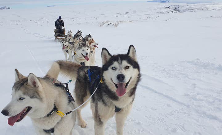 Rase mit einem Team von Sibirischen Huskies über die schneebedeckte isländische Landschaft. Diese Tour ist perfekt für alle, die Tiere, Abenteuer und spektakuläre Landschaften lieben. Mit nur Freunden oder Familie auf deinem Schlitten (max. 3 Erwachsene pro Hundeschlitten) und Guide (oder Musher) verspricht sie außerdem, ebenso persönlich wie aufregend zu werden.