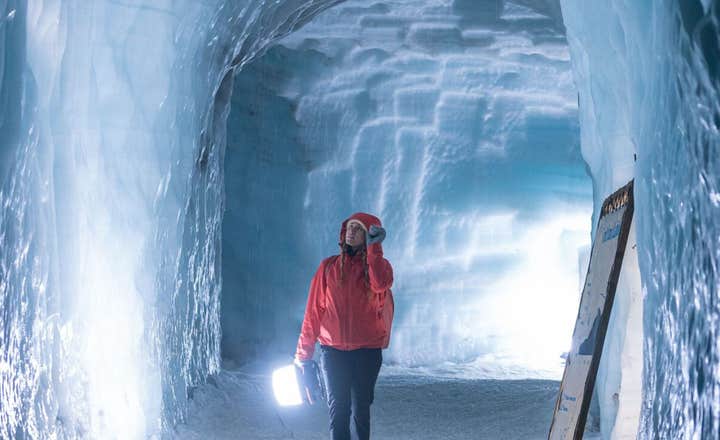 Dein Guide wird dich ins Innere führen und auf dem Weg dorthin erfährst du noch mehr über die Entstehung von Gletschern und kannst dir aus erster Hand ein Bild von dem festen Eis machen, aus dem sie bestehen. Die Wände des Tunnels erzählen die Geschichte der Bewegungen des Gletschers über Jahrhunderte hinweg, bis er zu dem wurde, was er heute ist.
