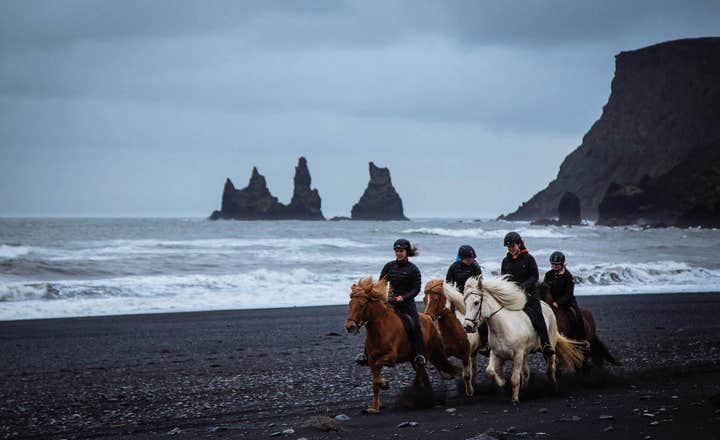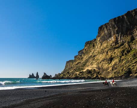 Cette partie du littoral a été élue l'une des plus belles plages non tropicales du monde, et en longeant le rivage, vous comprendrez exactement pourquoi. Le contraste entre le sable volcanique noir et les puissantes vagues de l'océan crée une toile de fond envoûtante pour votre randonnée à cheval.