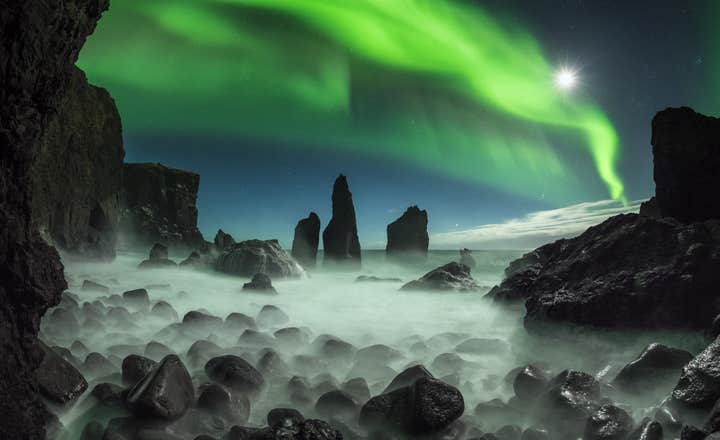 Dès que les aurores se manifesteront, vous pourrez sortir admirer la danse des aurores boréales illuminant le ciel arctique de couleurs chatoyantes. Voir ce spectacle au-dessus des panoramas dramatiques de l’Islande est une expérience unique dans une vie.