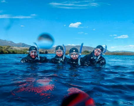Vivez une expérience absolument hors du commun en rejoignant cette excursion unique pour une aventure inoubliable de plongée avec tuba à Silfra. Flotter dans des eaux d’une clarté exceptionnelle, offrant une visibilité à couper le souffle, est déjà magique en soi. Mais ici, vous aurez la chance unique de plonger entre les plaques tectoniques européenne et nord-américaine. Nager entre ces plaques est une expérience que seule l’Islande peut offrir — un incontournable à inscrire sur votre bucket list pour cette île incroyable.