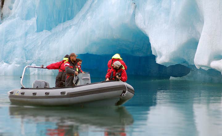 Après avoir rejoint votre groupe à Jokulsarlon 30 minutes avant le départ de l'excursion, vous recevrez des combinaisons de flottaison et un gilet de sauvetage. Les bateaux zodiac, petits et bas, permettent d'explorer une grande partie de la lagune et de s'approcher de la glace (dans la mesure où la sécurité le permet).