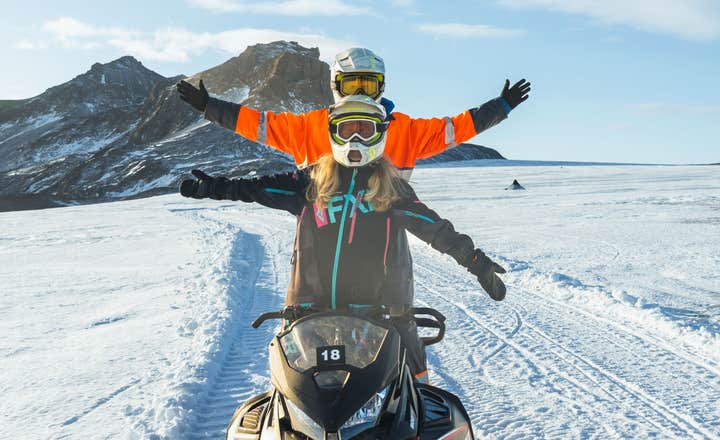 Partite per un'entusiasmante escursione in motoslitta sul ghiacciaio Langjokull, in Islanda.