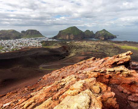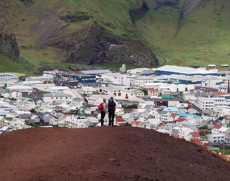 La giornata continuerà con un'escursione sulla cima del vulcano Eldfell, da dove avrai una vista bellissima delle isole e dei nuovi campi di lava. Poi raggiungerai Storhofdi, il luogo più ventoso d'Europa, per godere di panorami mozzafiato e avvistare qualche pulcinella di mare!