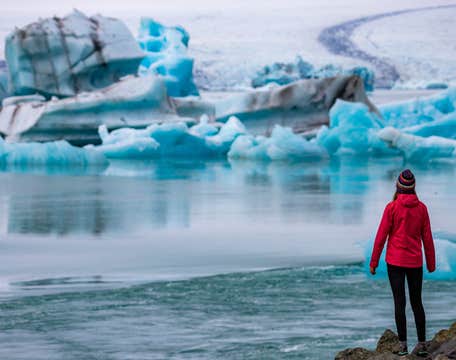 Een stop bij de gletsjerlagune Jökulsárlón is een must als je langs de beroemde zuidkust van IJsland reist. Het is een adembenemende locatie waar enorme ijsbergen, die van de nabijgelegen Vatnajökull-gletsjer zijn gevallen, op een aquamarijnblauwe lagune drijven. Hier ontmoet je je gidsen voor het avontuur van vandaag;