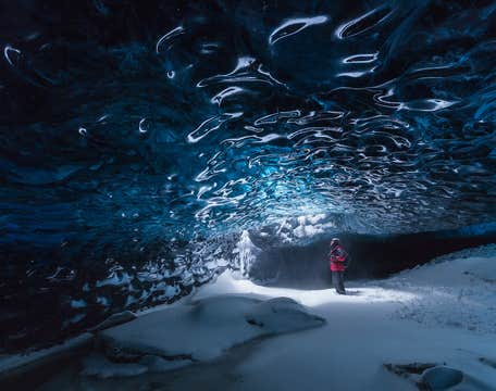 Dan kom je bij de ingang van de ijsgrot, waar je ruim de tijd krijgt om deze prachtige natuur te verkennen en te fotograferen. Binnen in de grot vind je wanden van saffierblauw gevuld met miljoenen kleine luchtbelletjes die in het ijs bevroren zijn, en vreemde ijssculpturen die gevormd zijn door de wisseling van de seizoenen;