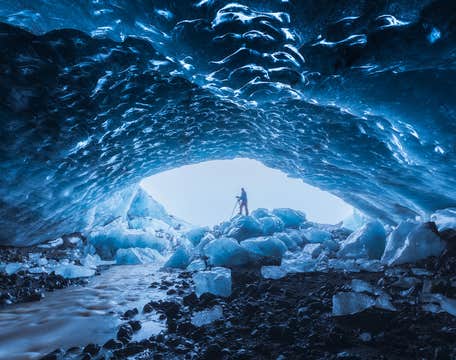Na enige tijd in de superjeep is het tijd om stijgijzers aan te trekken, de auto achter te laten en te beginnen aan de 1,5 uur durende gletsjerwandeling. Je wordt door de ijzige wildernis van de gletsjer geleid, langs adembenemende ijsformaties en moulins terwijl de gids je alles vertelt over gletsjers, van hoe ze worden gevormd tot hoe ze voortdurend veranderen. Houd er rekening mee dat de moeilijkheidsgraad voor deze excursie is ingesteld op 'gemiddeld' omdat de wandeling van en naar de grot vrij lang is.