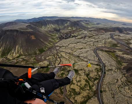 Wyrusz na ekscytującą przygodę paralotniarską nad okolicami Reykjaviku i podziwiaj piękno Islandii z wyjątkowej i niesamowitej perspektywy. Szybuj bezszelestnie nad rozległymi polami lawy, kraterami wulkanicznymi i zielonymi obszarami porośniętymi mchem, a wszystko to na obrzeżach stolicy Islandii.