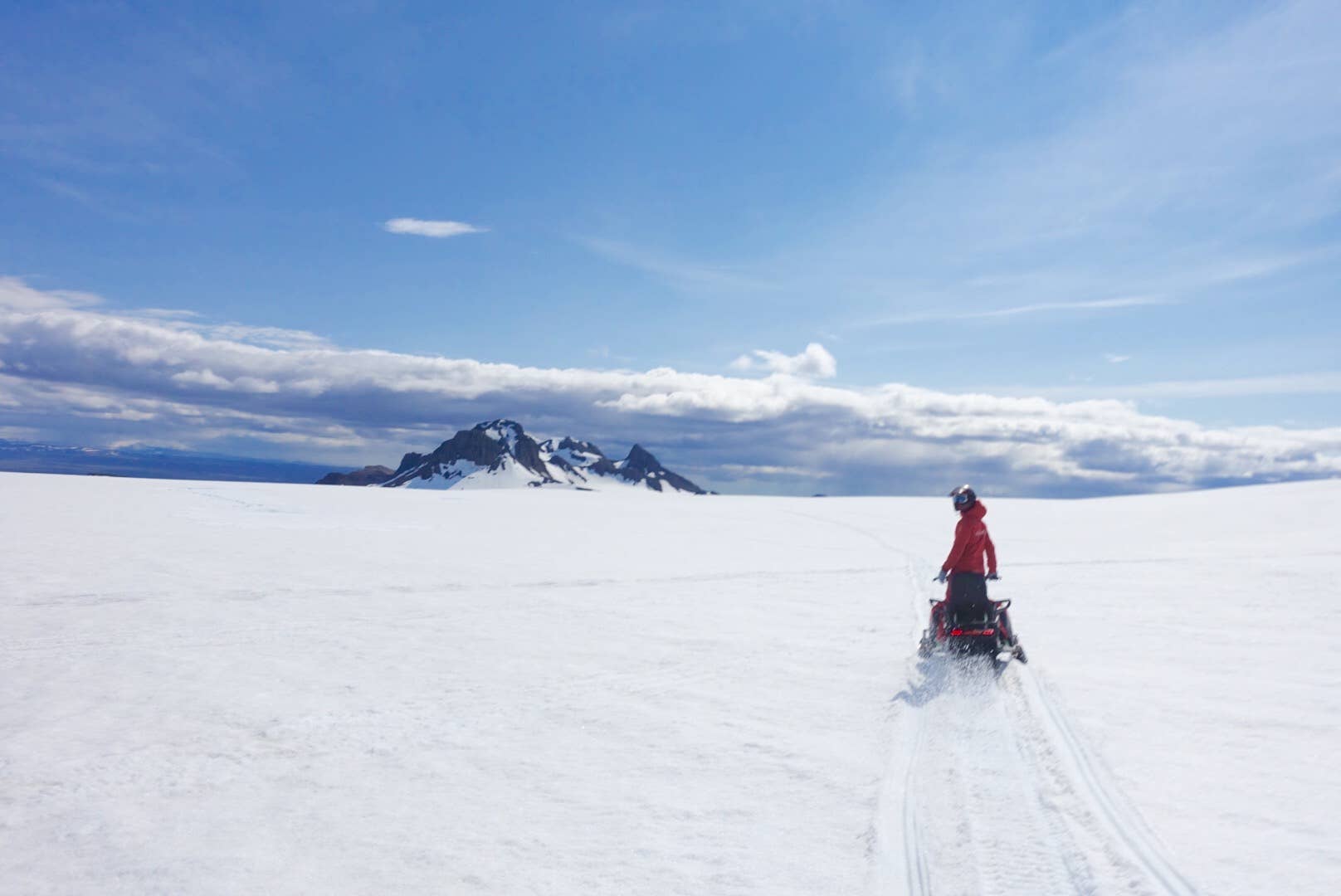 冰岛参加雪地摩托主要是在朗格冰川或者南岸的索尔黑马冰川(Sólheimajökull),可以分别结合黄金圈观光和南岸观光。