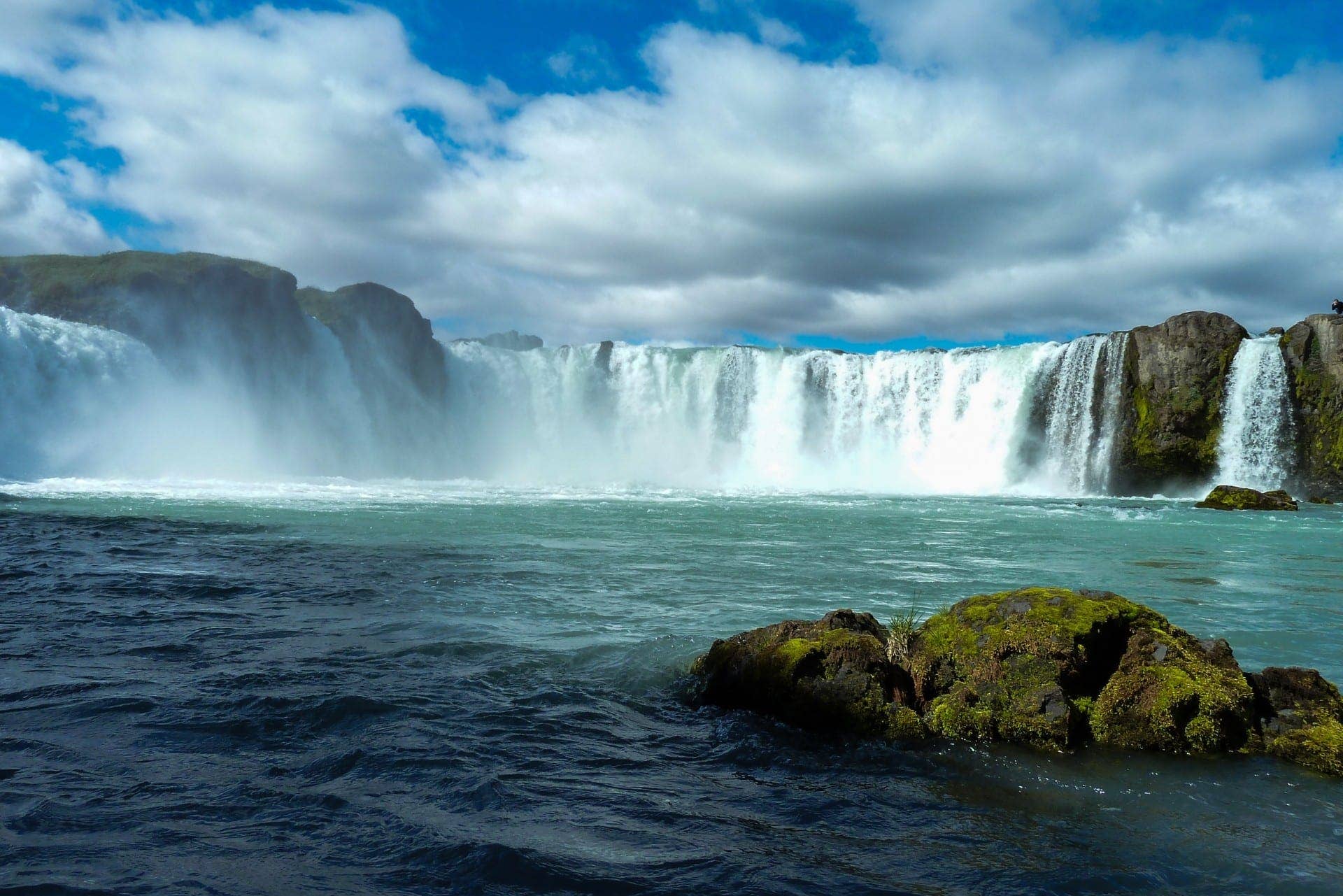 Годафосс возвышается на 12 метров и простирается почти на 30 метров в ширину, образуя мощную водную завесу, наполняющую воздух свежей прохладой. Прогуливаясь по тропинкам у водопада, вы услышите нарастающий шум воды, а с разных ракурсов сможете оценить его величие и красоту.