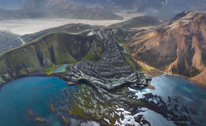Ландманналёйгар – обширная геотермальная область, которая находится в исландском высокогорье и славится своей невероятной красотой. Она расположилась по соседству с черным как смоль лавовым полем Лёйгахрёйн, и уникальный вид ей придают отполированные штормами риолитовые горы – тип вулканического ландшафта, поражающего многообразием цветов.
