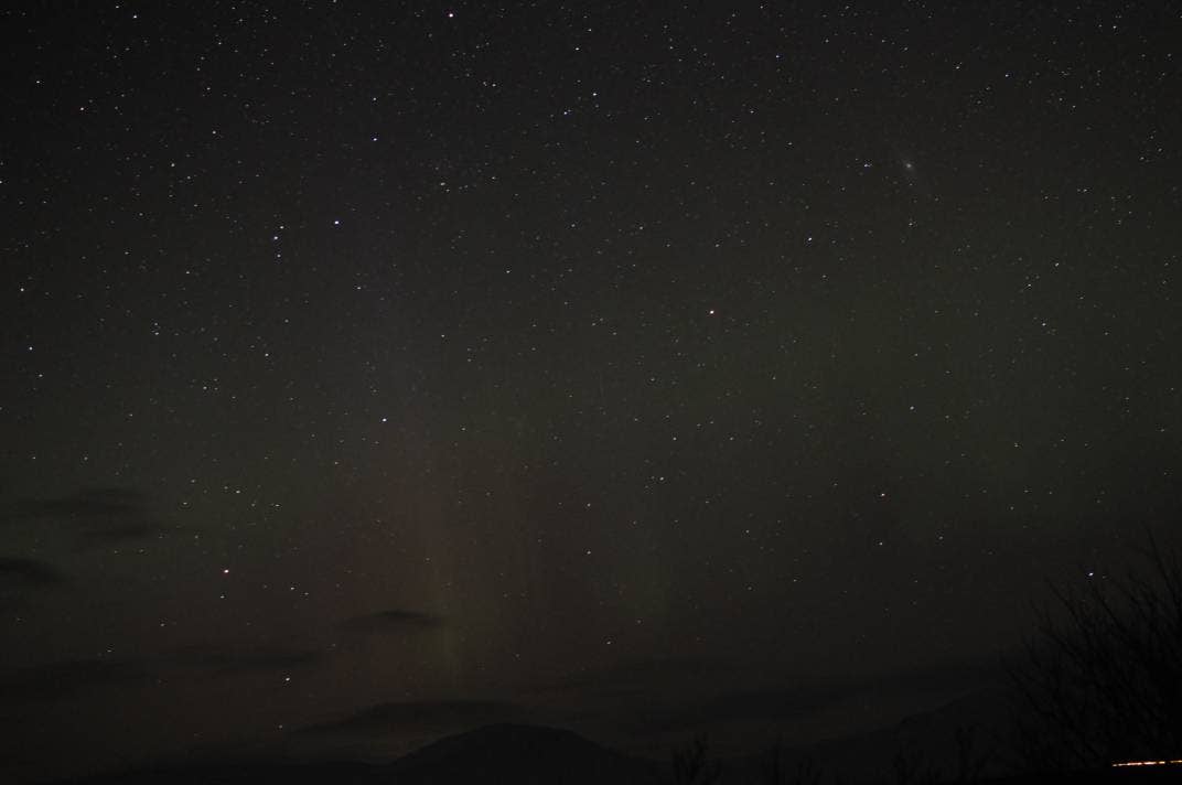 There, it was at first pretty hard to discern any Northern Light but as our eyes got used to the ambient darkness, the Aurora appeared and we could all clearly see its shimmering arch-shape: